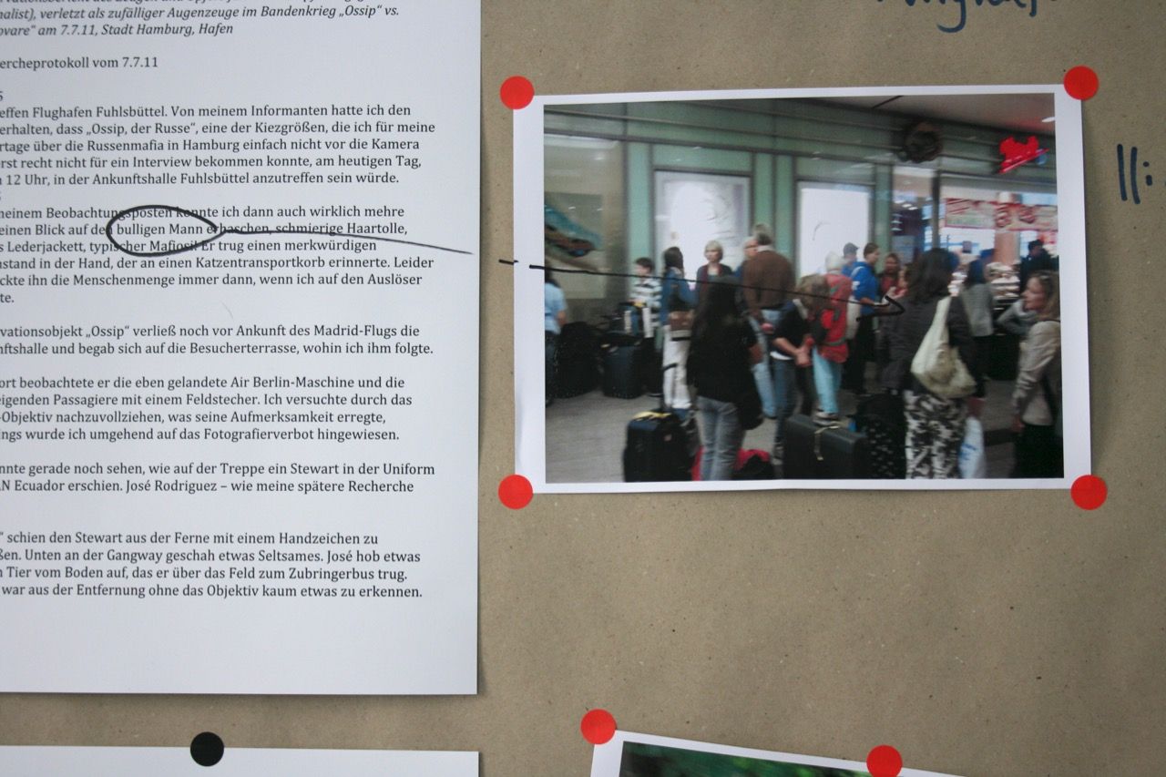 Die Ausstellung kombiniert Stills aus deutschen Fernseh-Produktionen, die den Charme des osteuropäischen Kriminellen ausspielen, mit eigenen Comic-Strips und Bilder-Geschichten, begleitet von Vortragsperformance und Migräne nährender Flüssigkeit.