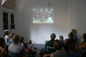 Kinder erzählen zu kurzen Filmen Geschichten.