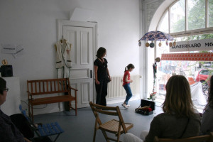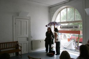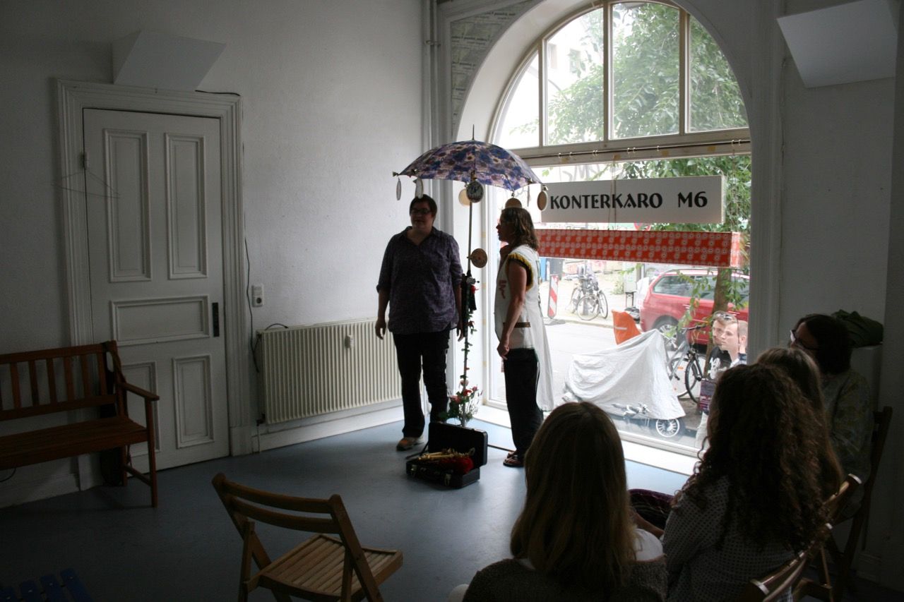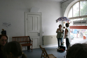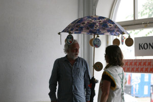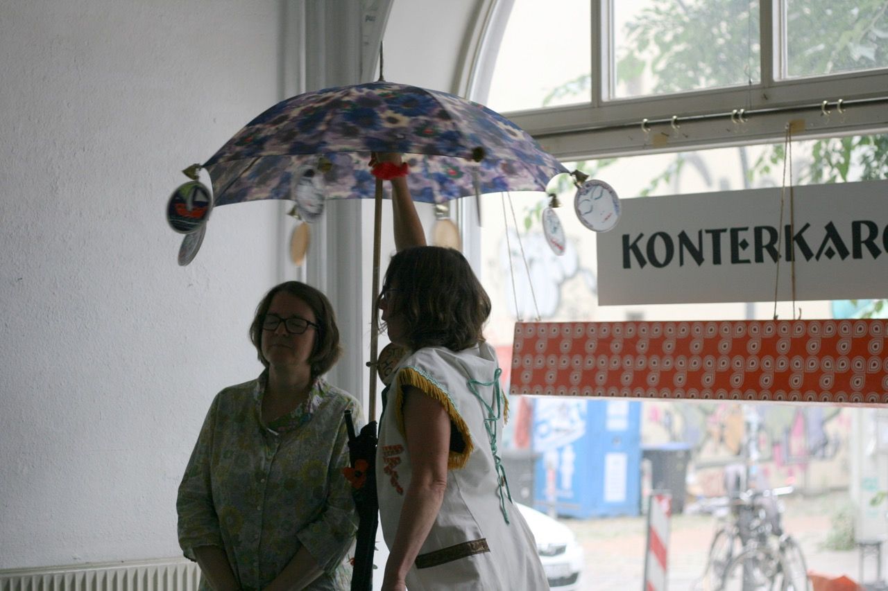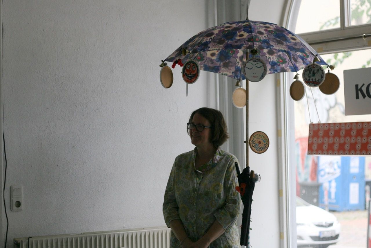 Mit von der Partie: das welterste fahrradbetriebene Stimmungshoroskop, heute allerdings ohne Fahrrad, dafür mit Schirm…