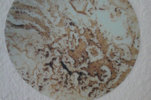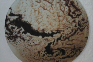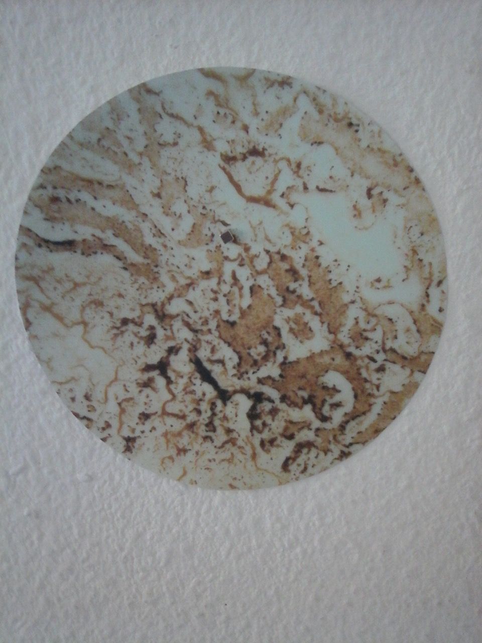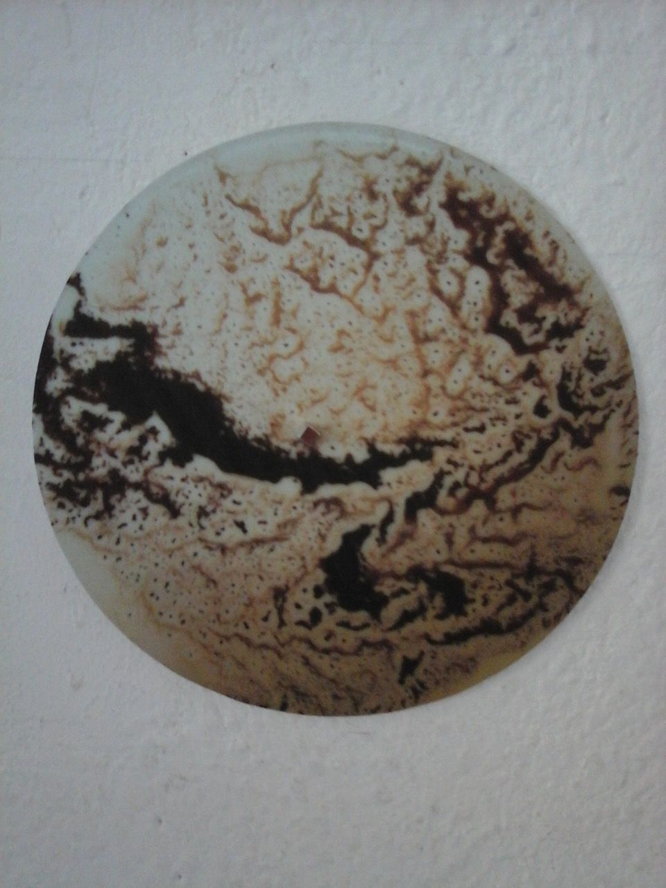 Sie sehen aus wie Planeten oder allerfeinste japanische Landschaftspinselzeichnungen, sind aber der Rest in meinem Kaffeebecher. Fotografiert und ausgedruckt.
