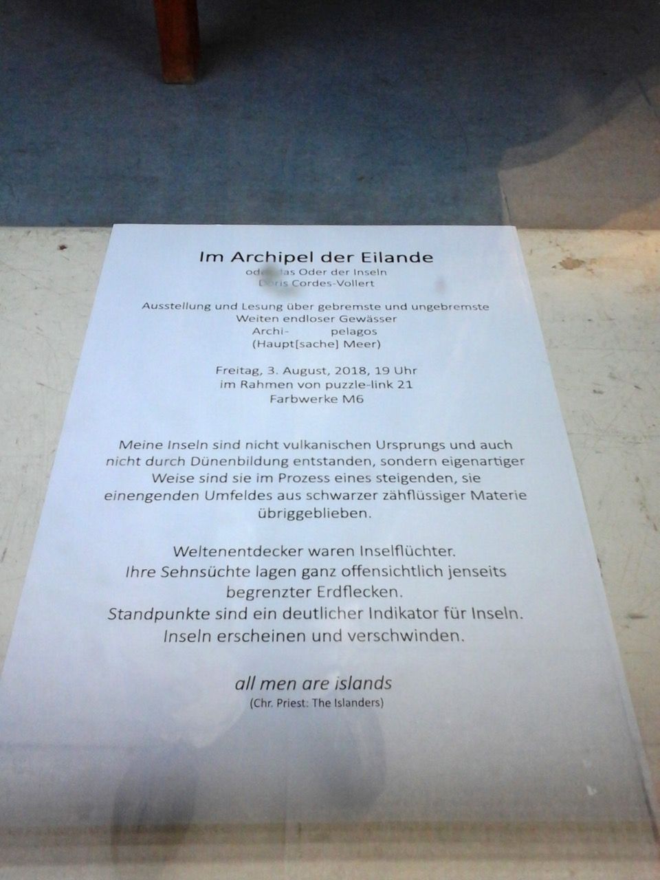 wir blicken auf eine Insel oder von einer Insel?