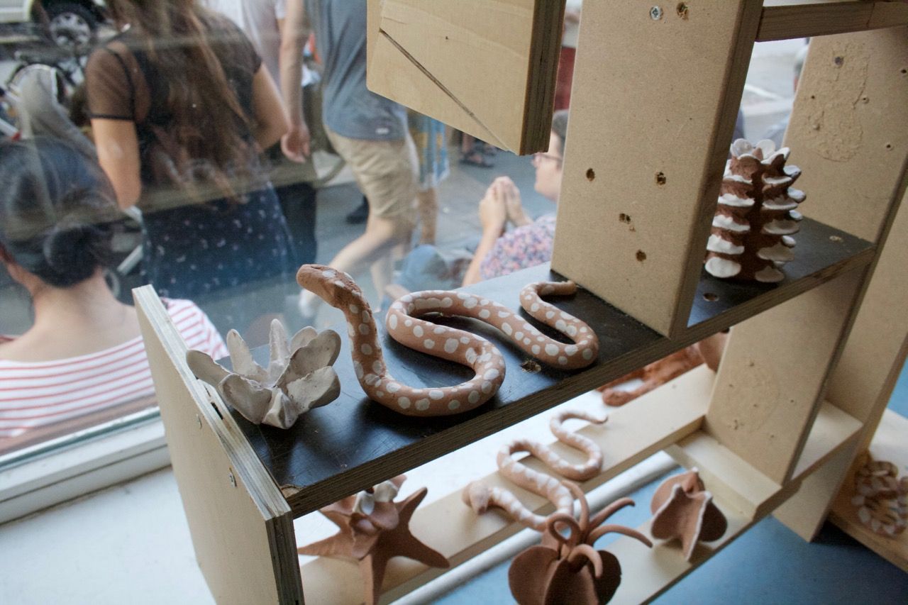 Ausstellung mit Bildern, Zeichnung , Malerei, auf Papier und Leinwand, Skulpturen aus Holz und Ton.