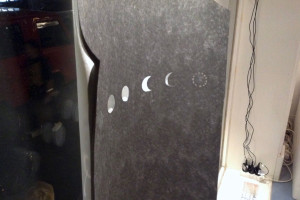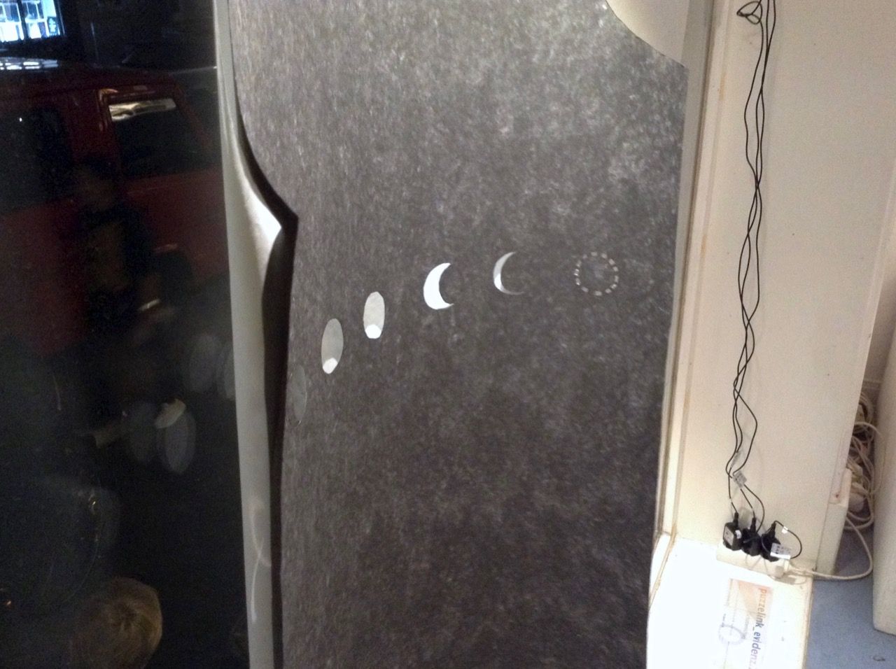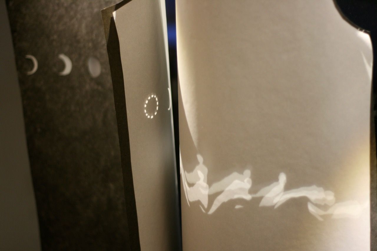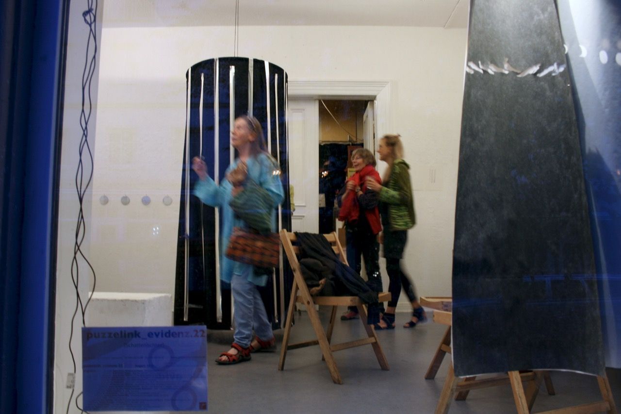 An anderen Plätzen im Raum Installationen mit Scherenschnitten und Licht. Ina Schlafke