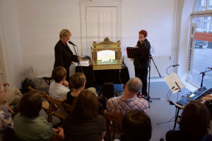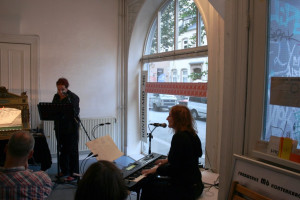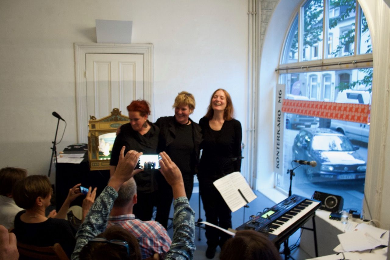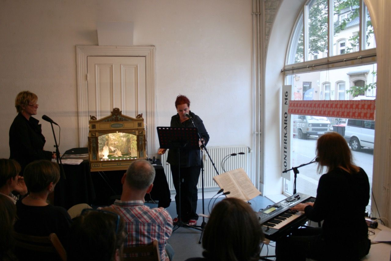 La Cumpaneia: Wiebke Johannsen (Text und Lesung), Birgit Kiupel (Bilder und Simultanmalerei), Melanie Mehring (Synthesizer)