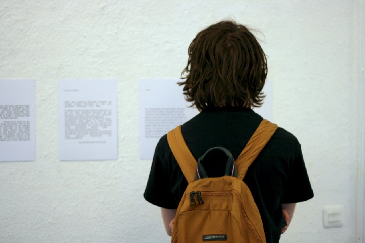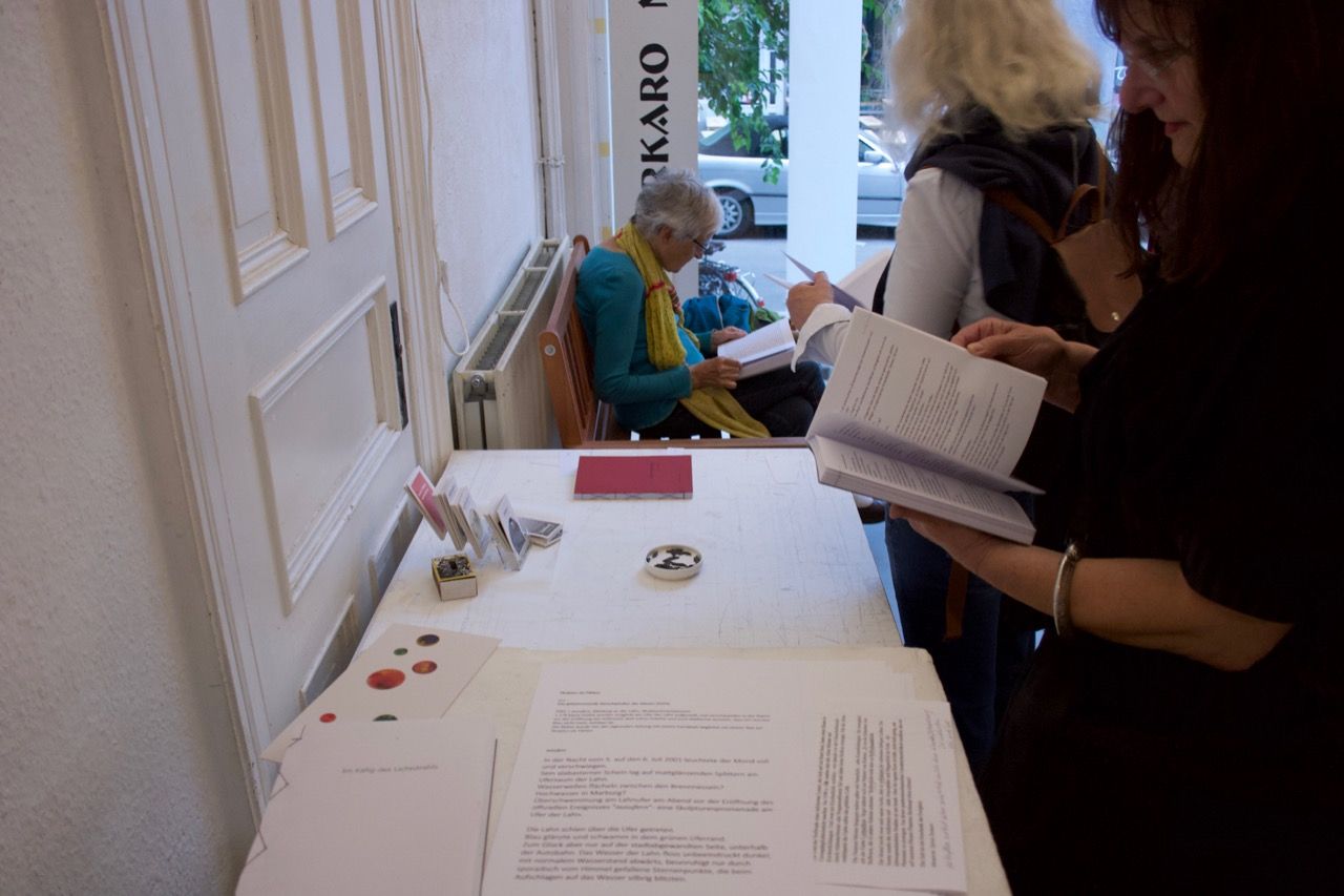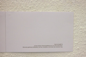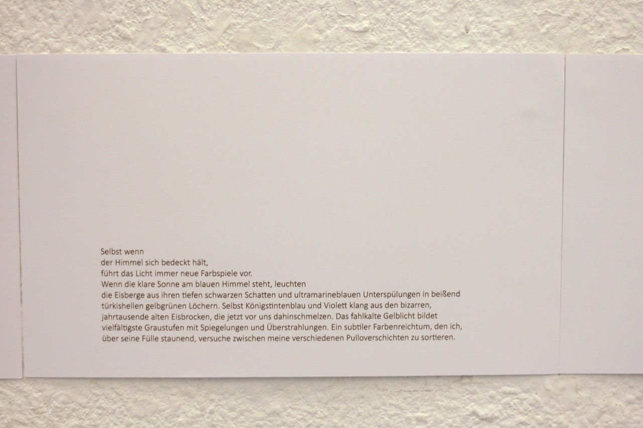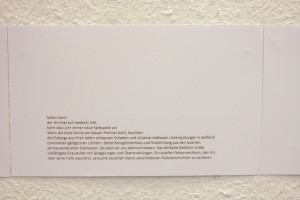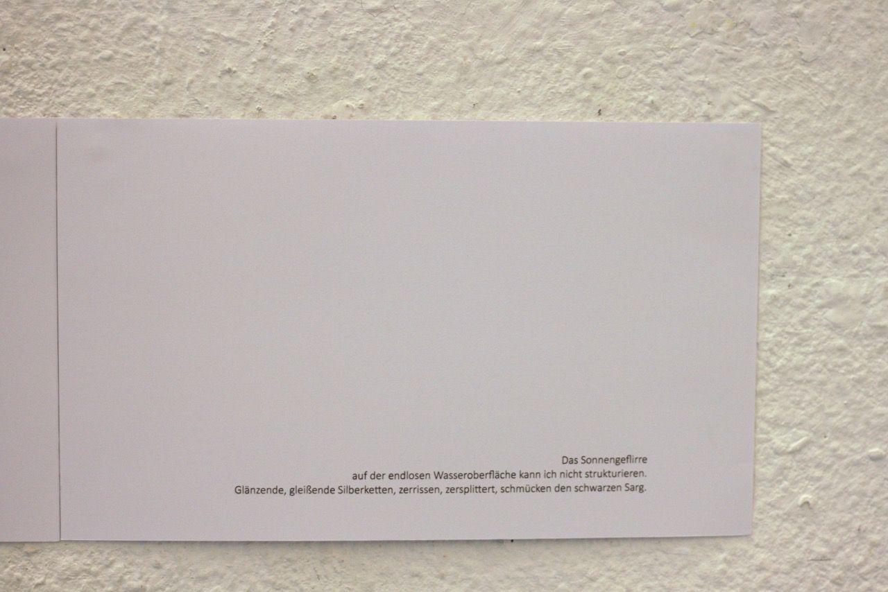 und einige kleine Texte als Widerschein entzogener Sichtbarkeit ablesbar an die Wand geheftet.
