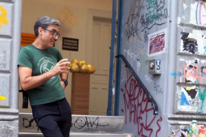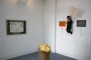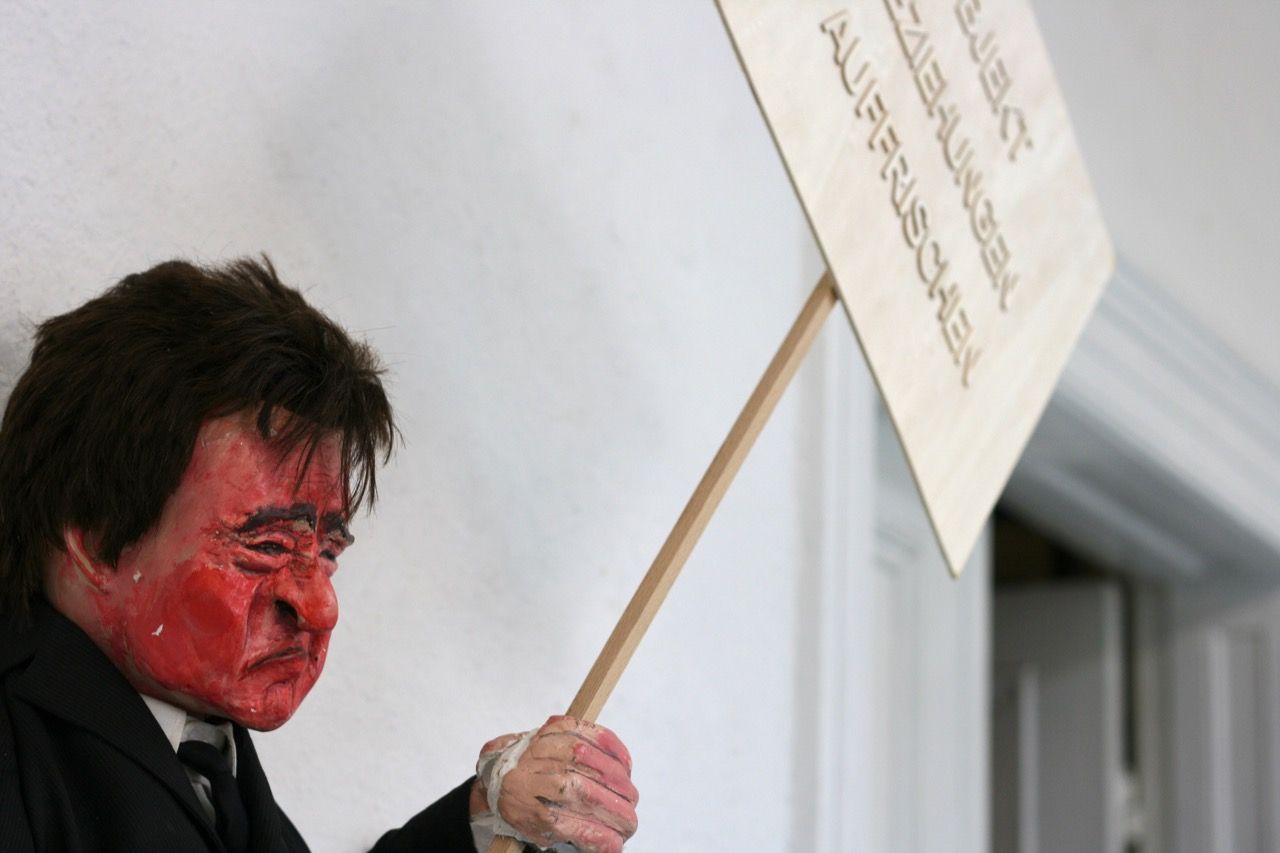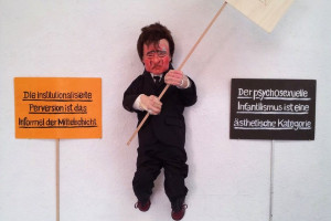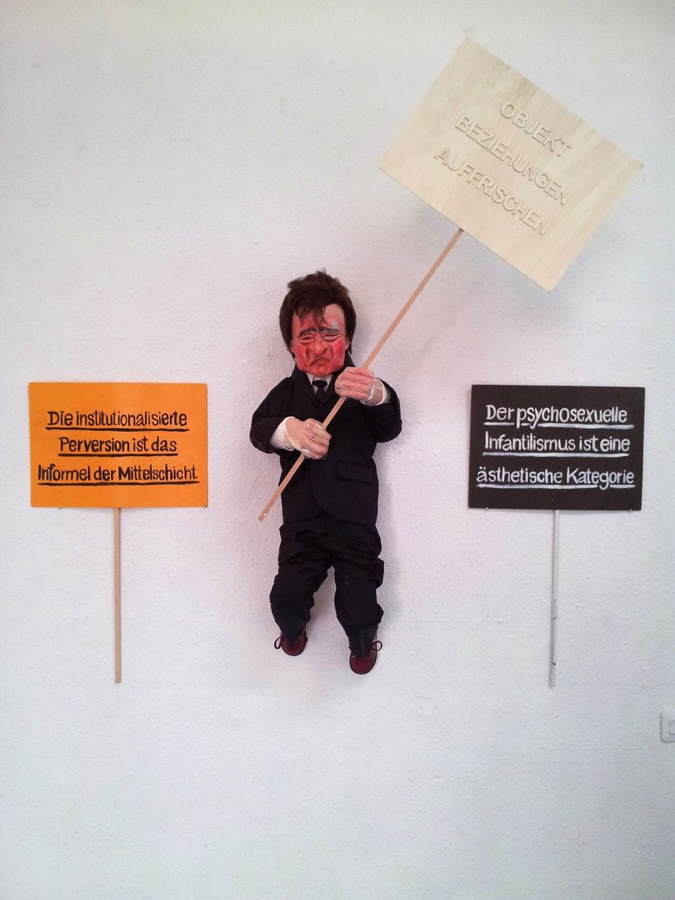 Oknophil Philobat bietet den Besucher*innen sichere Objekte in den freundlichen Weiten der puzzelink-evidenz Galerie.