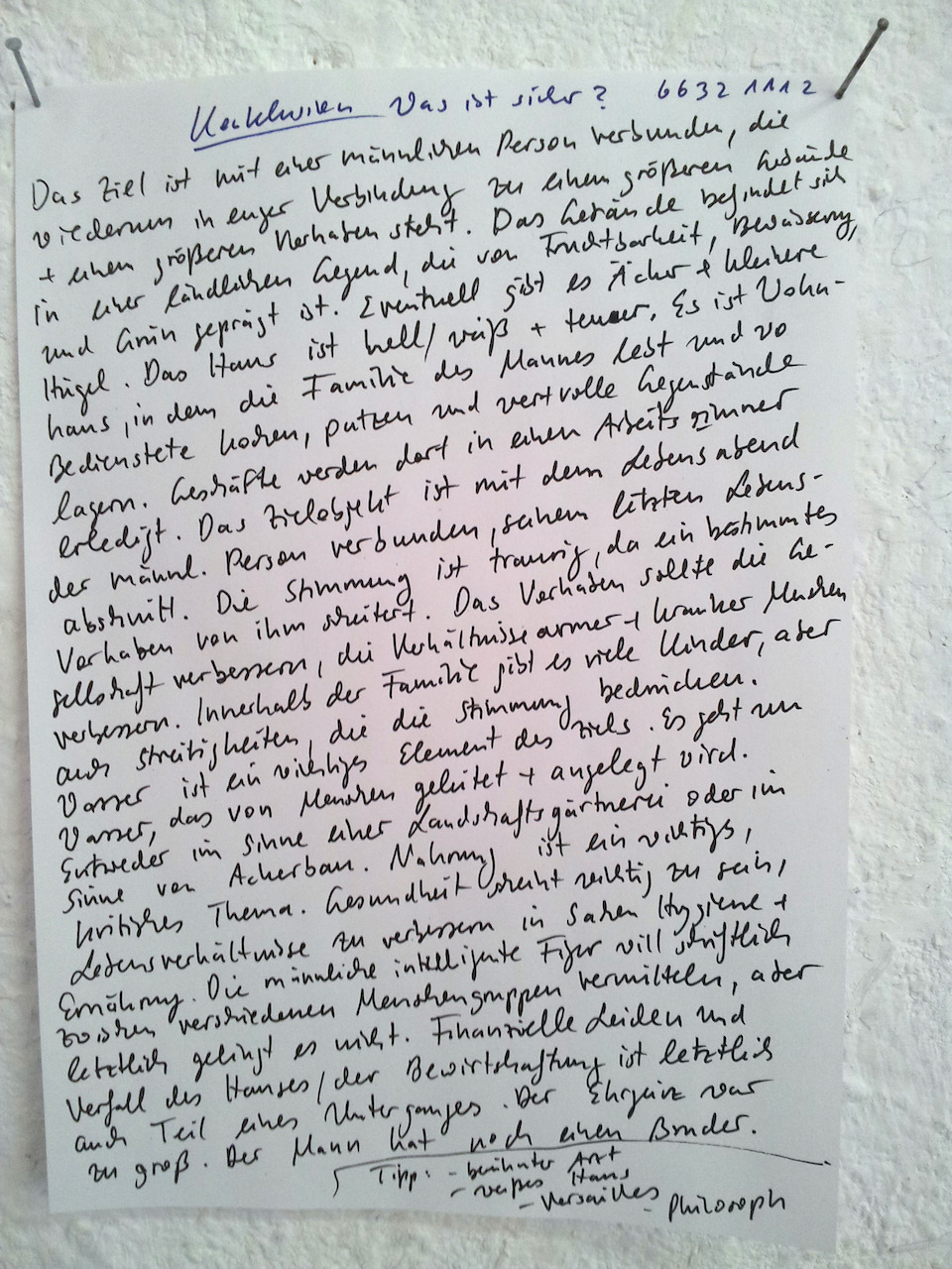 Die Ausstellung stellt den Zielen (meistens sind diese mit einer Fotografie verbunden) die Zeichnungen und Notizen der Ergebnisse gegenüber. Jeder soll sich eine eigene Meinung bilden, ob die Experimente geglückt sind oder nicht. Ist hier außersinnliche Wahrnehmung im Spiel? Oder bilden die Ergebnisprotokolle eher die ganz persönlichen unbewussten Prozesse des Zeichners ab?