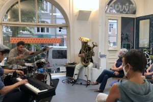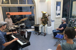 Mit Pinguin Moschner bilden die beiden seit 2022 ein Trio, was sich der Suche und selten dem Finden verschrieben hat. Bei dieser Suche zögern sie nicht zu zögern, innezuhalten und auch auf der Stelle zu stehen - Abrüstung im musikalischen Sinne.