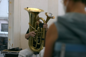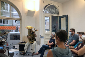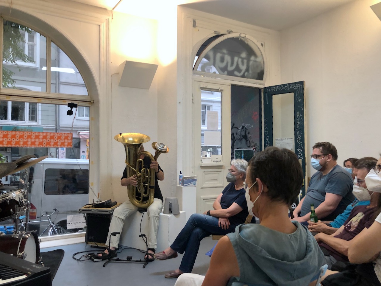 PERMUT – ein Projekt, das Pfingstens und Bechs Zusammenarbeit neben Flonks und Phalanx weiter ausbaut, in den tiefen Regionen allerdings mit einem Blasinstrument, der Tuba, auskommt.