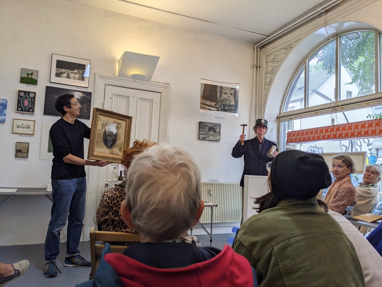 im Jahr 2023 lösten wir die herkömmliche Form unserer Reihe zugunsten einer Zwischenform auf. Nämlich der einer 31-tägigen Ausstellung. Es wurden folglich den ganzen August über Bilder und andere Kunstwerke ehemaliger puzzelink-Teilnehmer_innen in der Galerie Farbwerke m6 präsentiert.