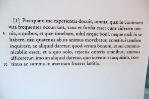 Una semihora con scruta et crapula, de Baruch de Spinoza, John Fogerty, Robert Frost et cetera. Strepitus et lingua Latina.