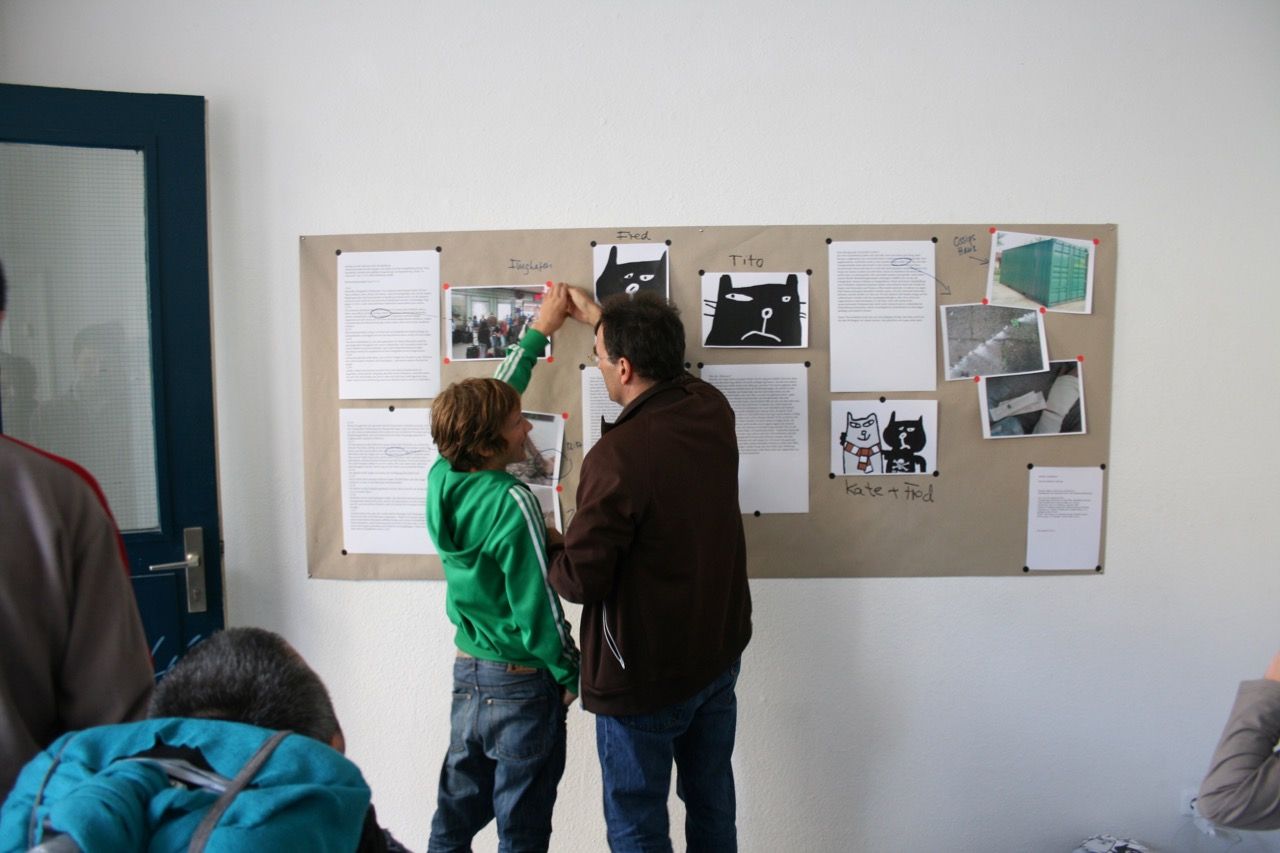 Die Ausstellung kombiniert Stills aus deutschen Fernseh-Produktionen, die den Charme des osteuropäischen Kriminellen ausspielen, mit eigenen Comic-Strips und Bilder-Geschichten, begleitet von Vortragsperformance und Migräne nährender Flüssigkeit.