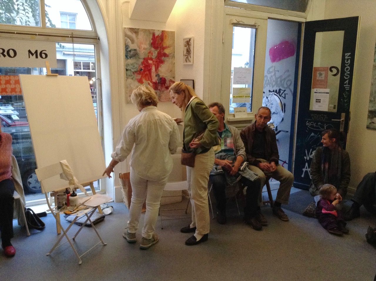 Es wird gemalt vor Ort - Weiß trifft Rot - jeweils zu Beginn einer Stunde