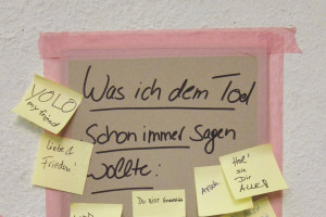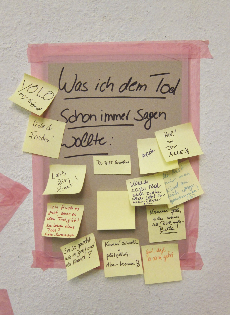 Wie wollt ihr leben, wenn das Leben zu Ende ist? Über welchem Urban-Gardenzaun wollt ihr hängen? Eine Trauerfeier in der St. Pauli Stadionkapelle oder eine Beisetzung auf dem HSV-Friedhof? Nachhaltig vergehen an den Wurzeln eines Baumes oder das zu kurze Leben verlängern bei –196 ̊C in der Kryonik-Röhre. Ist das Ende ein Lifestyle-Problem oder sind die Toten eher ein Urban Death Project für die Zurückbleibenden? Welches Wohnprojekt hat noch einen Platz für freie Geister auf ihrem Genossenschaftsfriedhof? Lasst uns einen Blick riskieren!