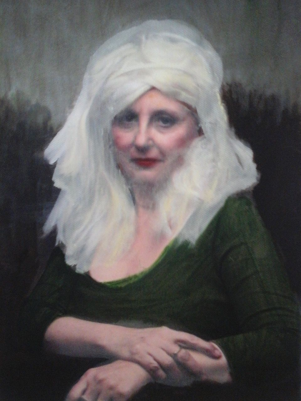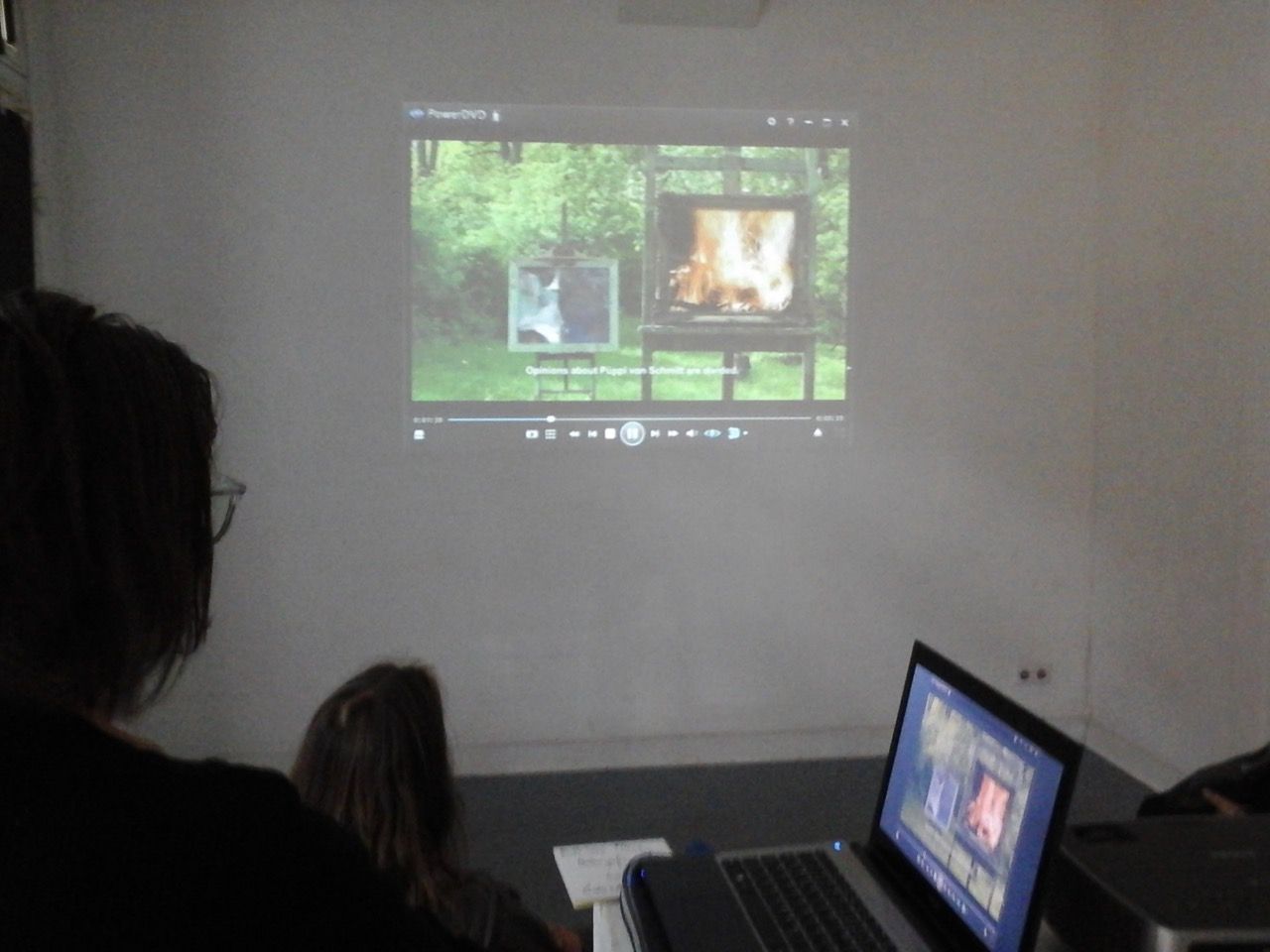 Sie versucht anhand ihrer hingepfuschten Bilder zu beweisen, das Kunst nicht das ist was einer kann, sondern was er dem Käufer einbringt.