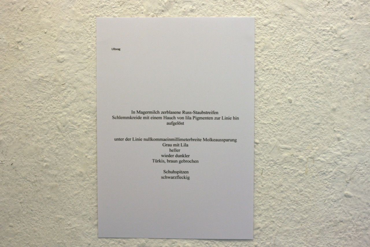 und einige kleine Texte als Widerschein entzogener Sichtbarkeit ablesbar an die Wand geheftet.