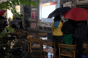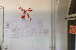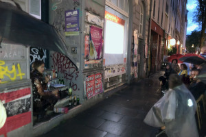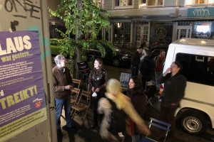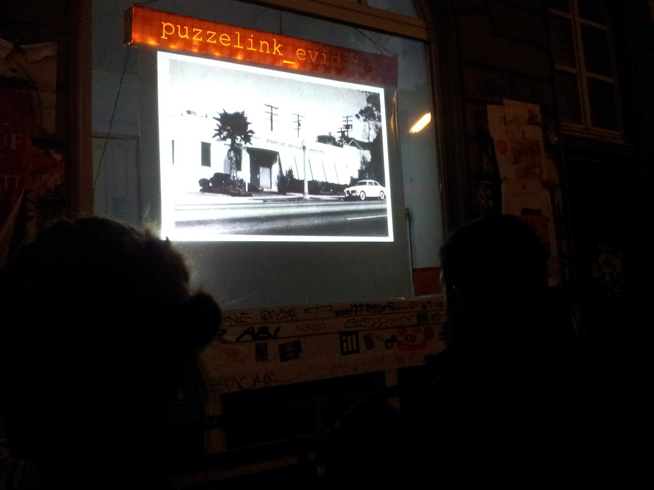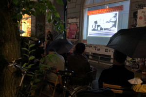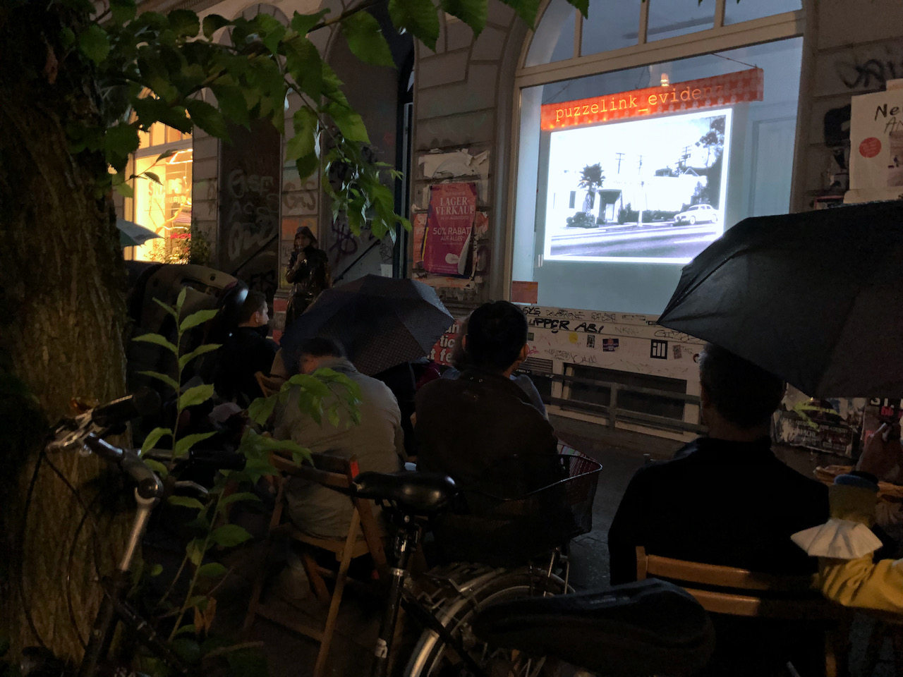 Die Bilder zum Vortrag werden nach außen auf die Straße projiziert. Der Vortrag beginnt bei Anbruch der Dunkelheit.