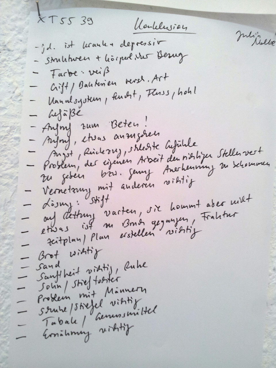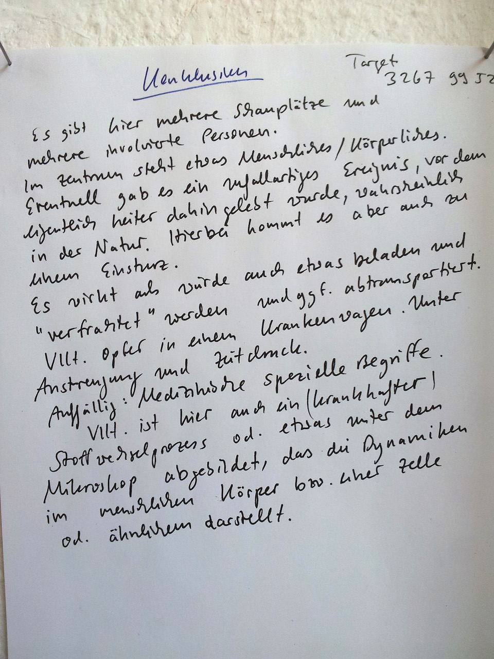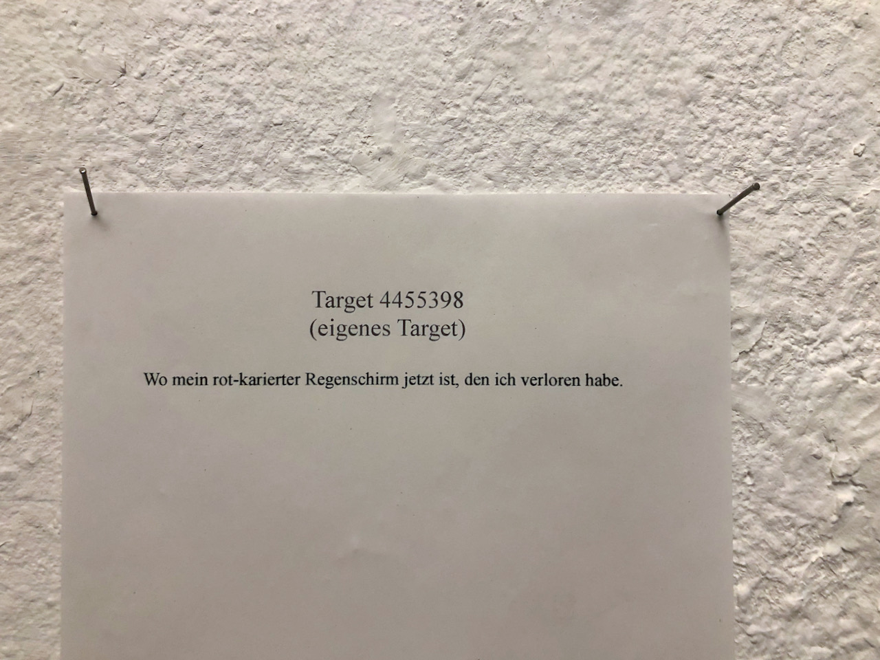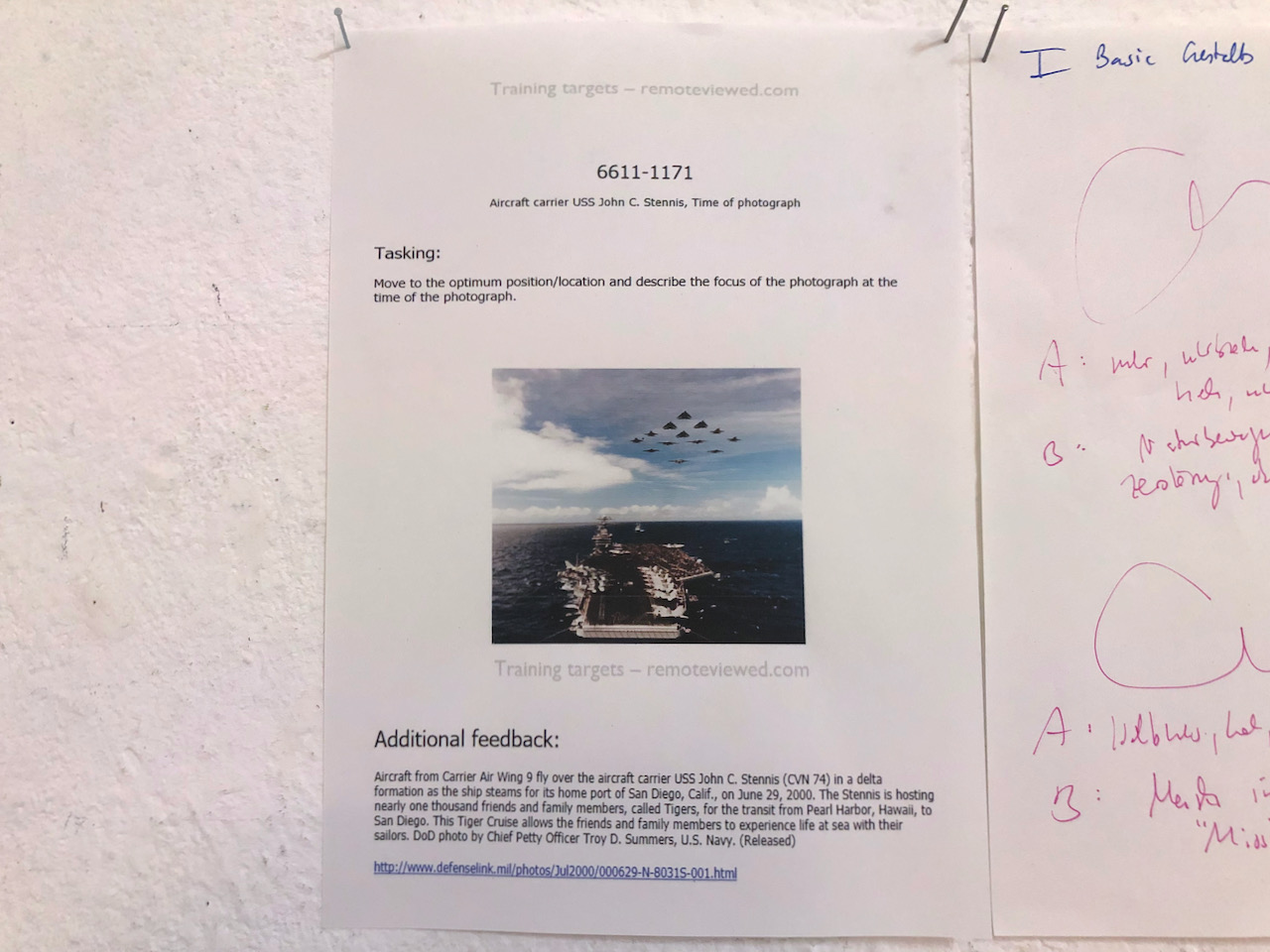 Die Ausstellung stellt den Zielen (meistens sind diese mit einer Fotografie verbunden) die Zeichnungen und Notizen der Ergebnisse gegenüber. Jeder soll sich eine eigene Meinung bilden, ob die Experimente geglückt sind oder nicht. Ist hier außersinnliche Wahrnehmung im Spiel? Oder bilden die Ergebnisprotokolle eher die ganz persönlichen unbewussten Prozesse des Zeichners ab?