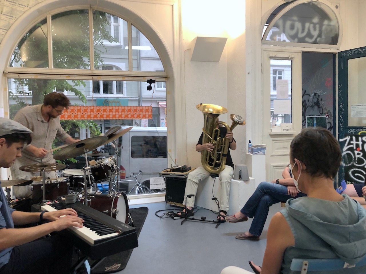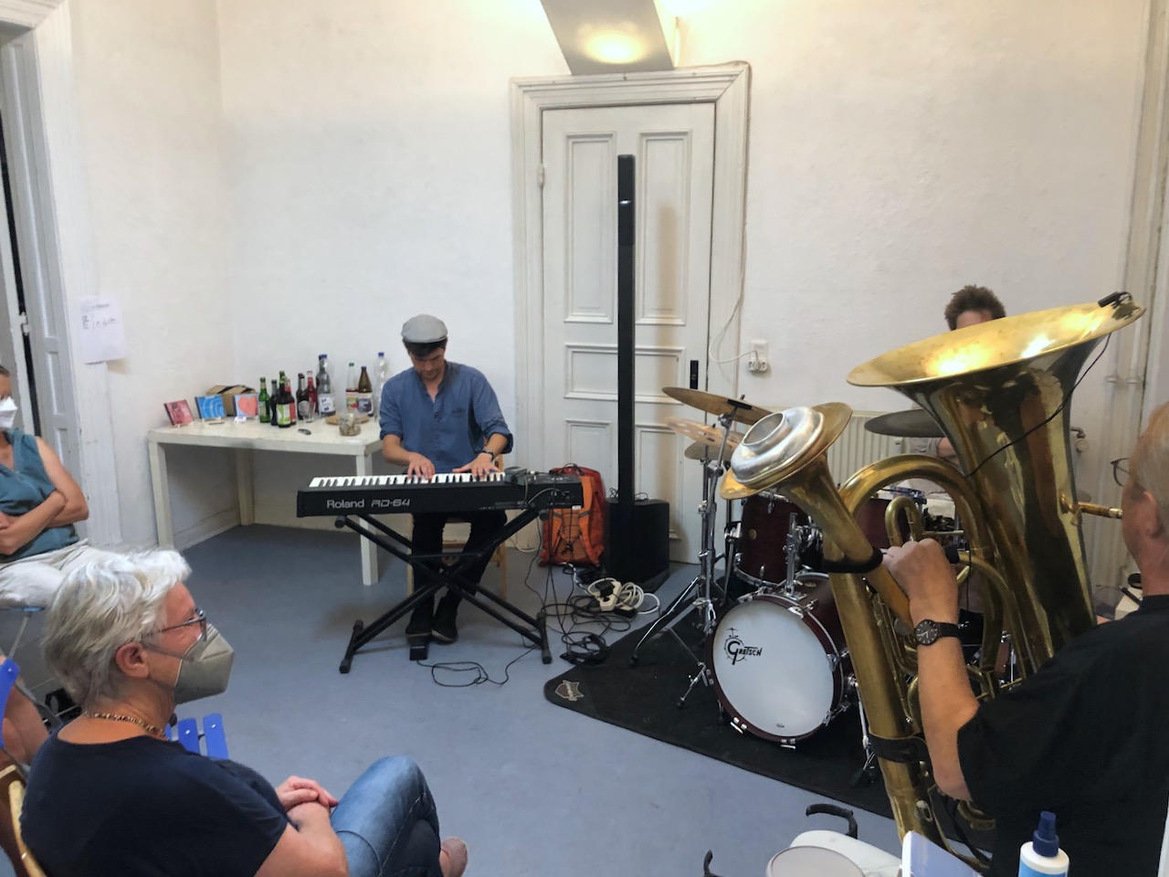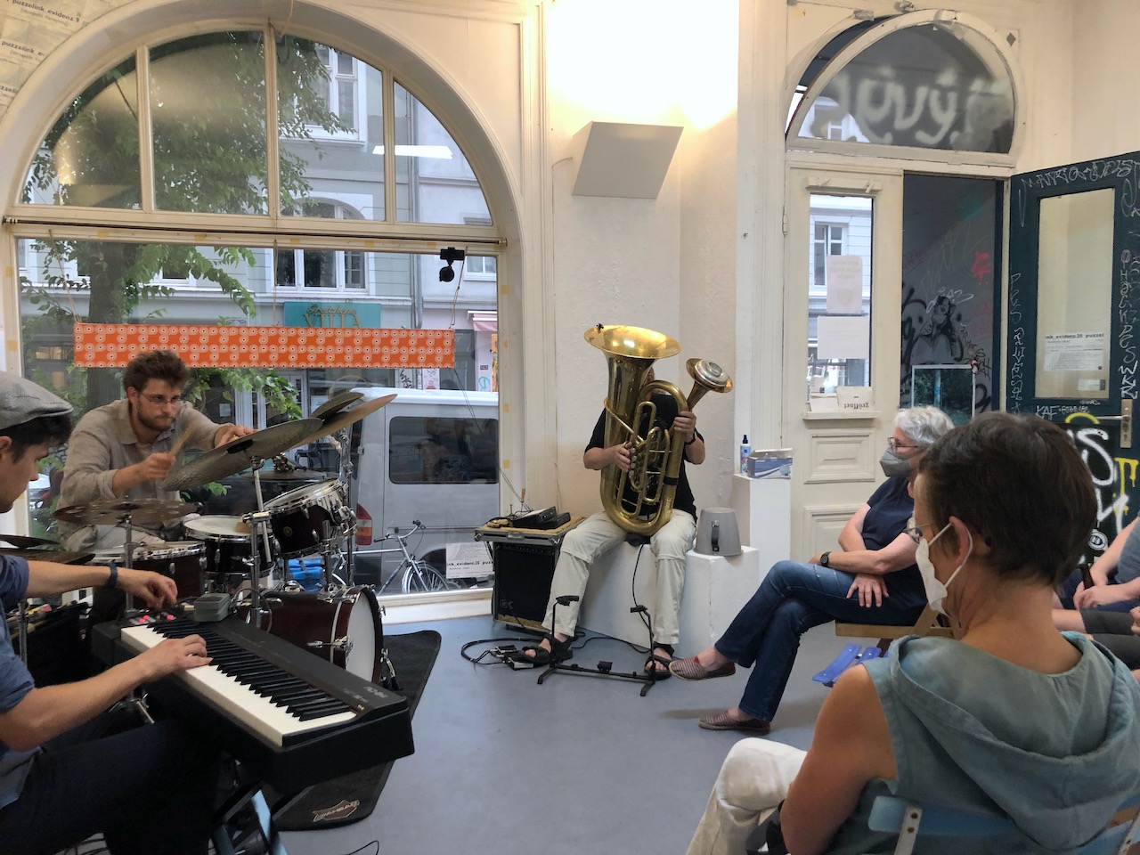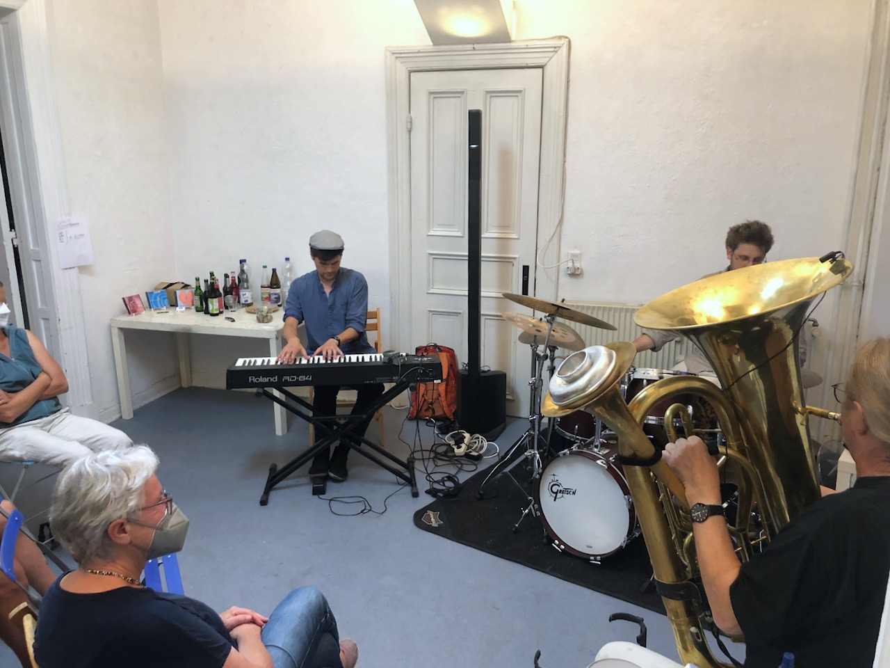 Mit Pinguin Moschner bilden die beiden seit 2022 ein Trio, was sich der Suche und selten dem Finden verschrieben hat. Bei dieser Suche zögern sie nicht zu zögern, innezuhalten und auch auf der Stelle zu stehen - Abrüstung im musikalischen Sinne.