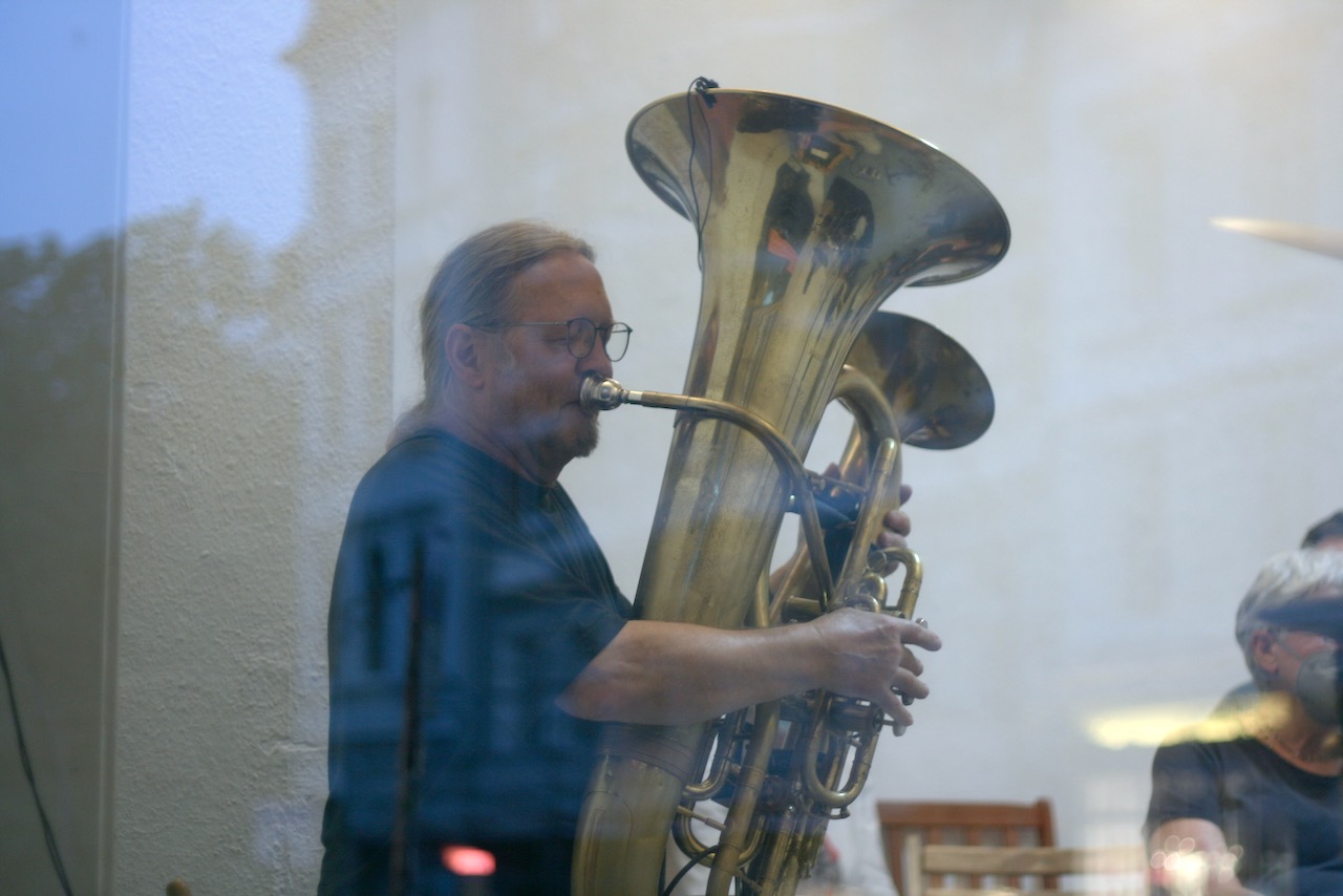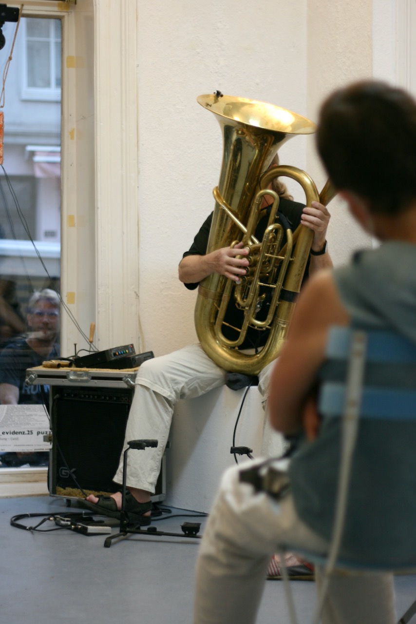 PERMUT – ein Projekt, das Pfingstens und Bechs Zusammenarbeit neben Flonks und Phalanx weiter ausbaut, in den tiefen Regionen allerdings mit einem Blasinstrument, der Tuba, auskommt.